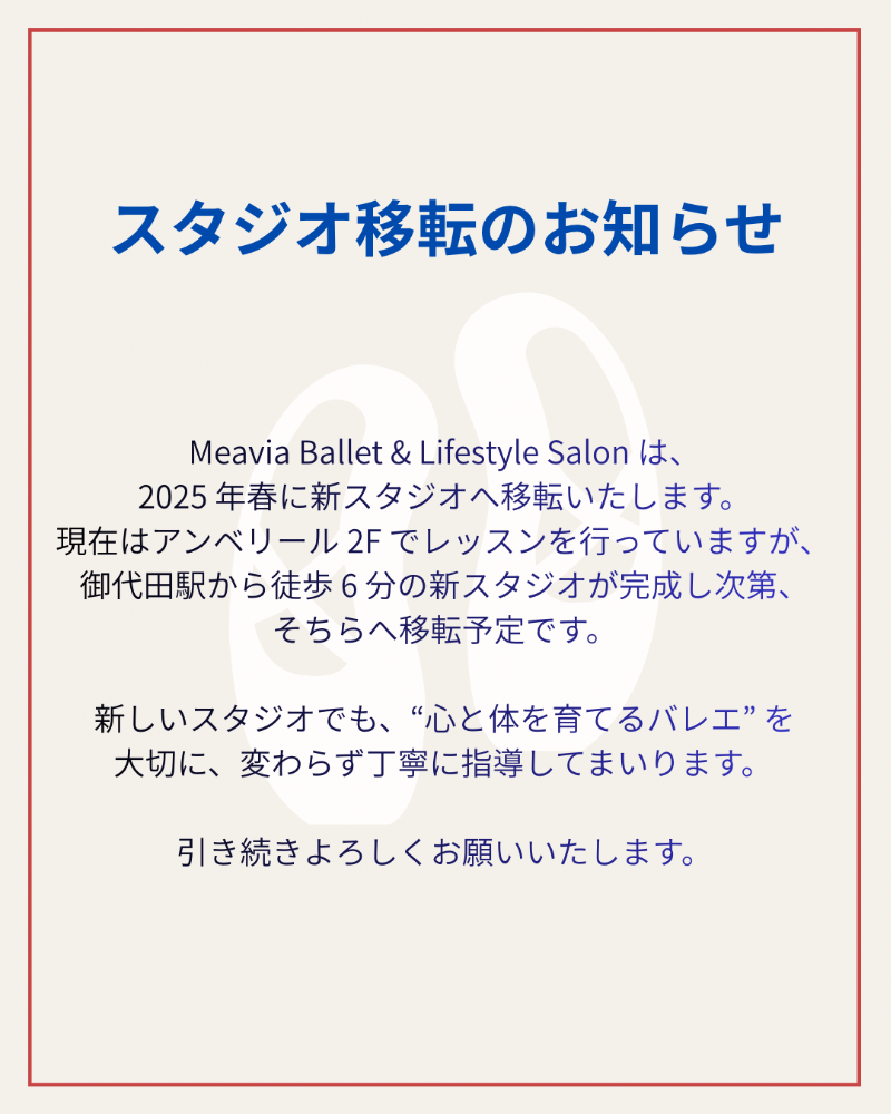 | 教室名 | Meavia ballet and lifestyle salon |
